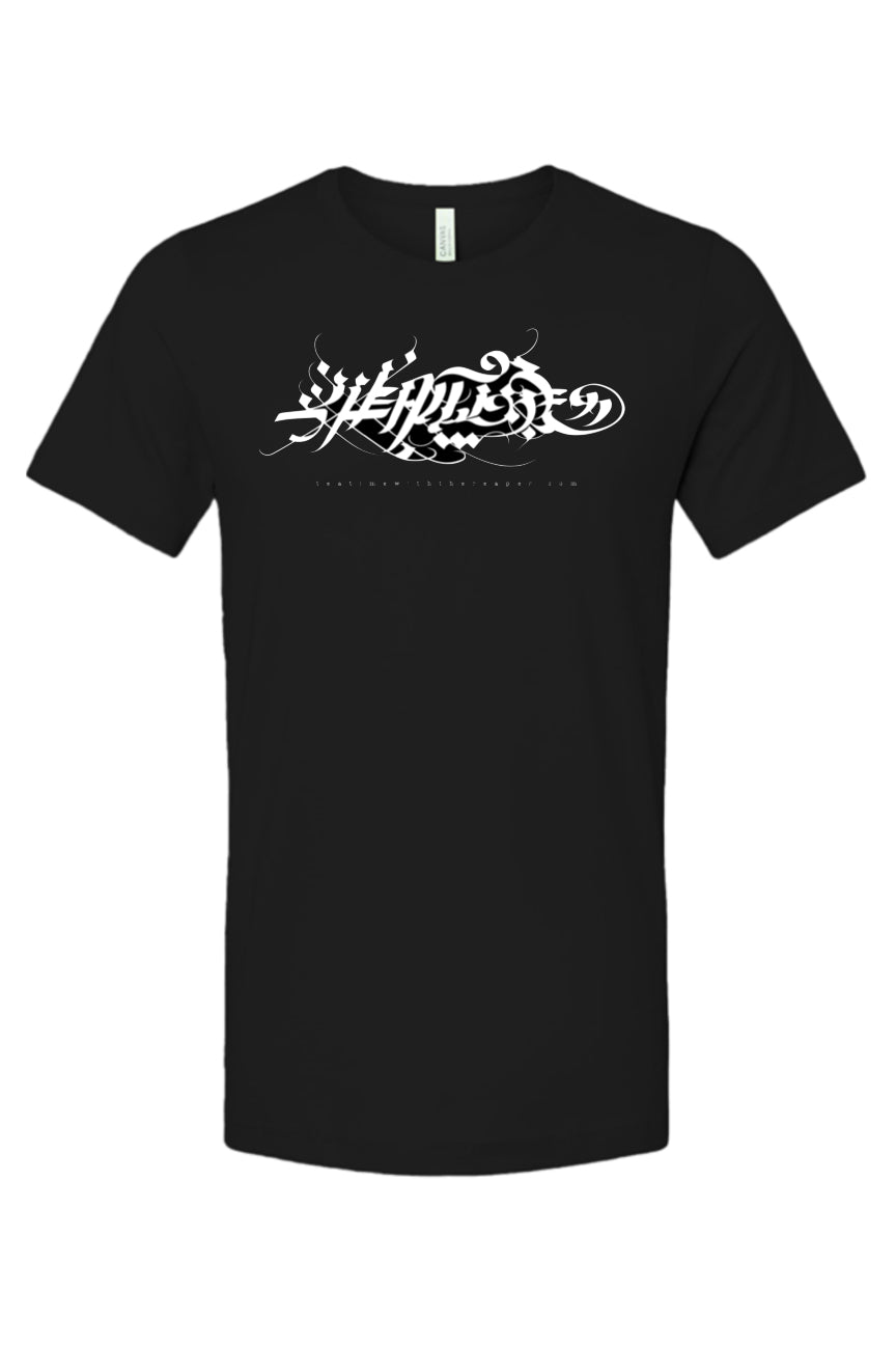 white on black. unisex jersey tee. 52% cotton / 48% poly. made in nicaragua. print on demand by apliiq